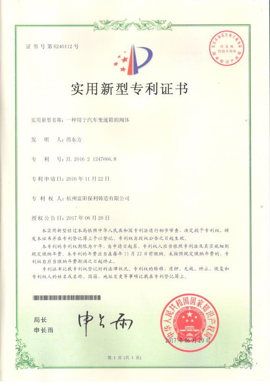 專利證書01